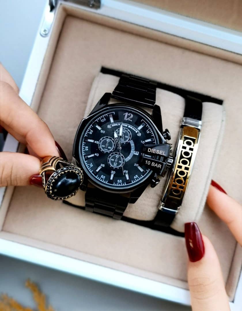 ست ساعت و دستبند و انگشتر مردانه دیزل تاریخدار رنگ ثابت با دستبند چرمی + انگشتر طرح ترک۱۳٬۵۰۰٬۰۰۰ 3%
